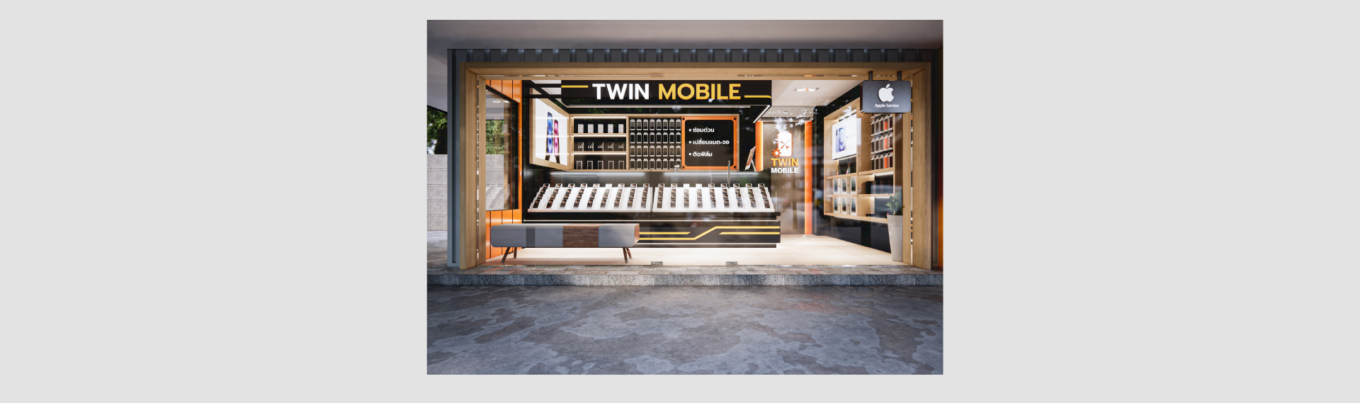 งานติดตั้งหน้างาน ร้าน Twin Mobile พื้นที่ขนาดเล็กแต่จัดเต็มไปด้วยฟังก์ชั่น เปิดบริการเรียบร้อยสำหรับร้านซ่อมโทรศัพท์และเปลี่ยนฟิล์มในย่านคลองหลวง ปทุมธานี โดยพื้นที่ตั้งอยู่ Avenue แบบ Outdoor อัพเดทภาพงานผลิตเพียงคลิกลิ๊งค์ด้านล่าง