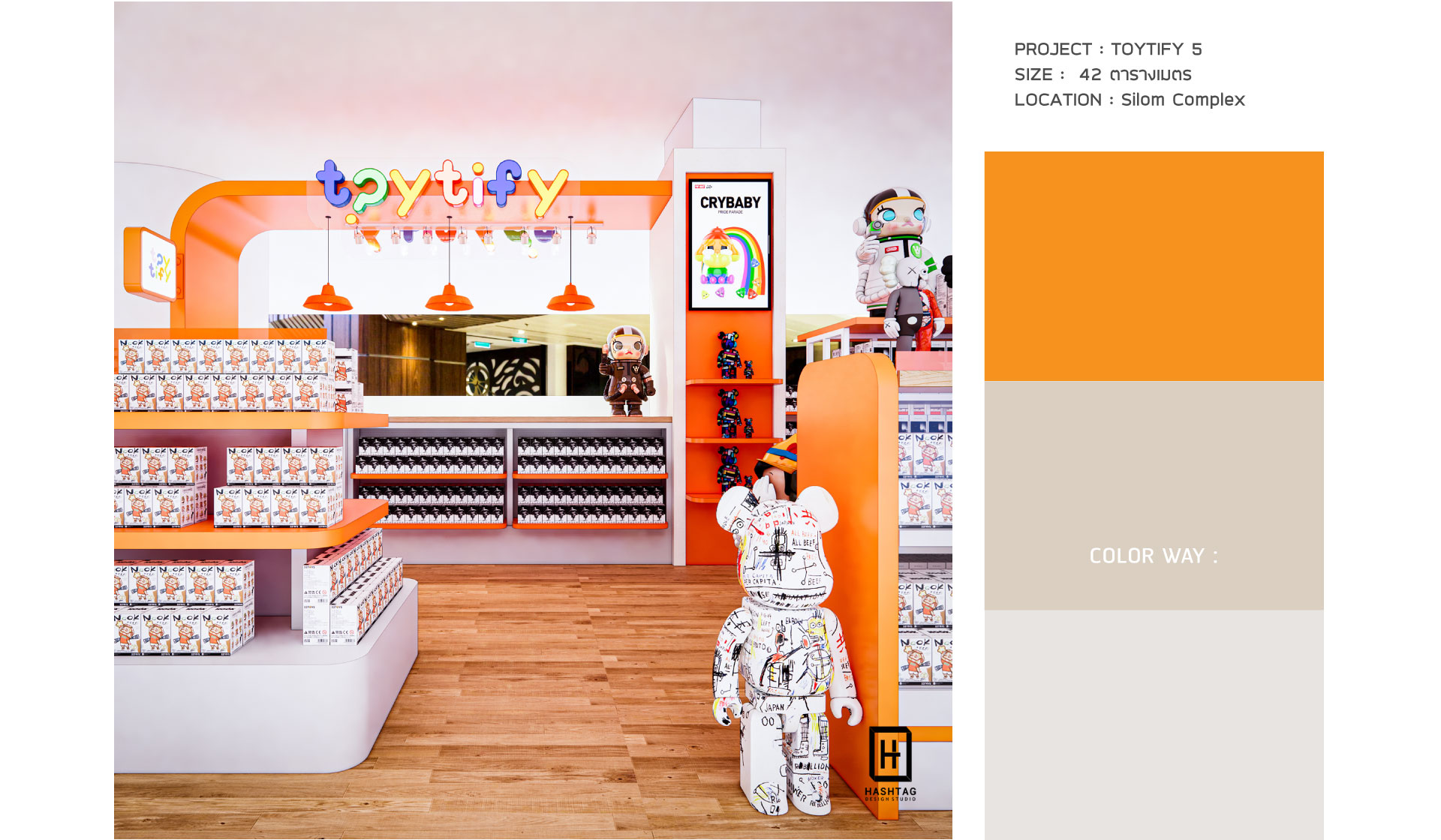 งานออกแบบร้าน "Toytify" เดินทางสู่สาขาที่ 5 จุดรวมคนรัก และชอบสะสมงานอาร์ตทอยส์ ออกแบบเป็นไปตามโทนสีของแบรนด์ เน้นชั้นวาง และชั้นโชว์สินค้า