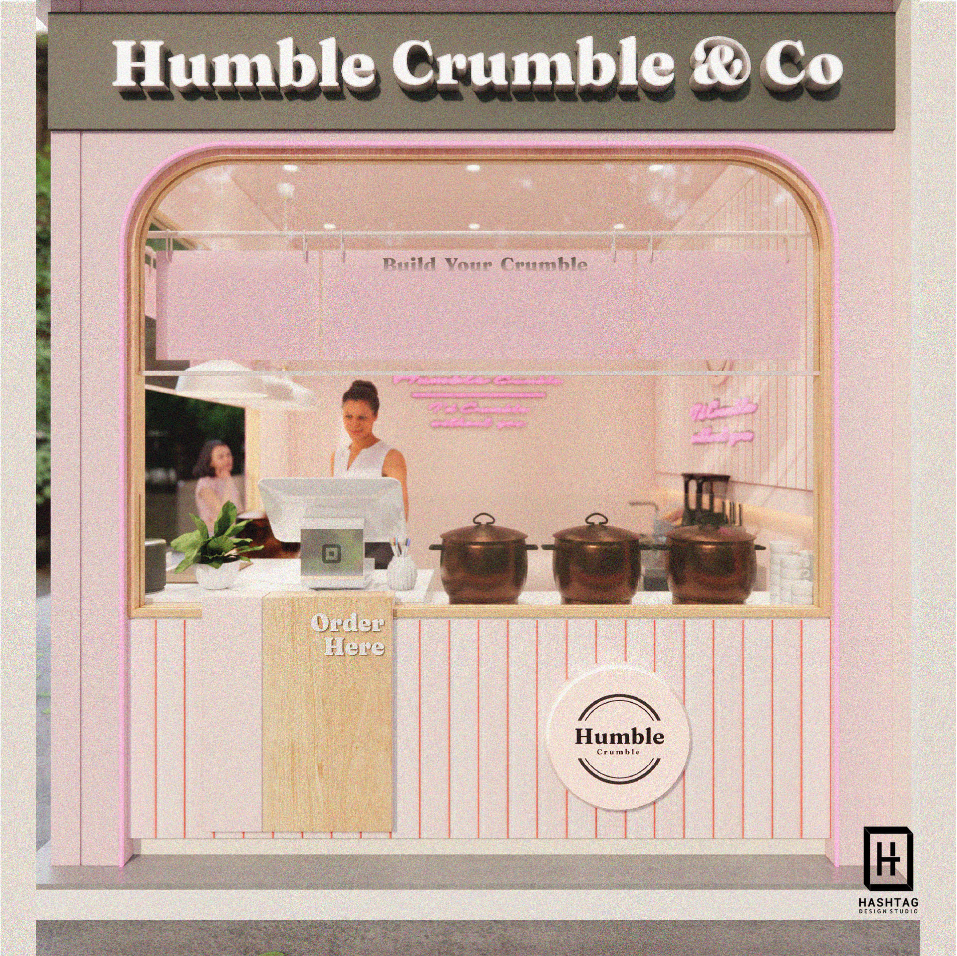 งานออกแบบคีออสร้าน "Humble Crumble" ร้านค้าขนาดเล็กที่ออกแบบตกแต่งเป็นโทนชมพู ขายสินค้าเป็นแบบ Take Away มีพื้นที่สั่งอาหารและรับอาหารแยกมุมกัน ภายในเป็นพื้นที่เตรียมอาหารโดยทางเราได้ออกแบบและจัดวาง เพื่อให้ตอบโจทย์การใช้งานในพื้นที่ที่มีอย่างจำกัด