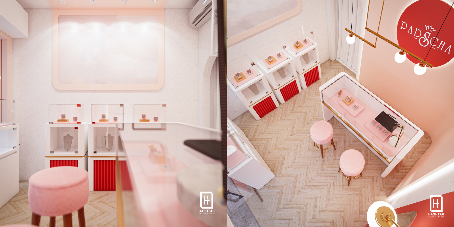 ร้านขายสินค้าประเภทเครื่องประดับ จิวเวลรี่ ออกแบบเน้นเฟอร์นิเจอร์ลอยตัว