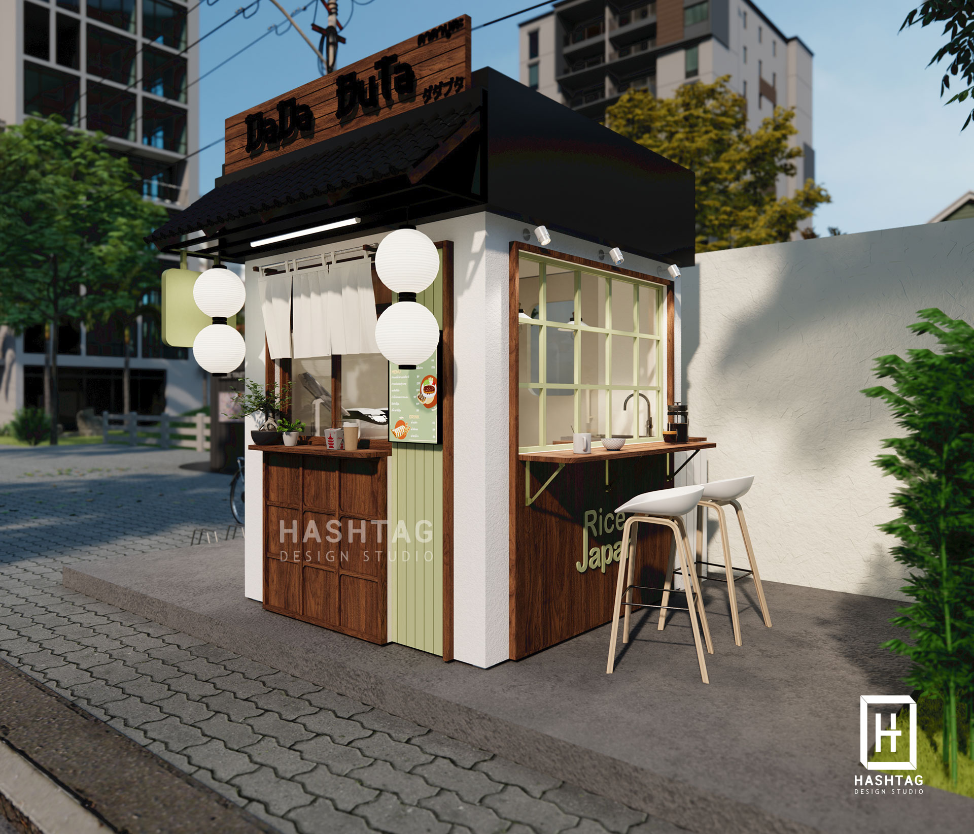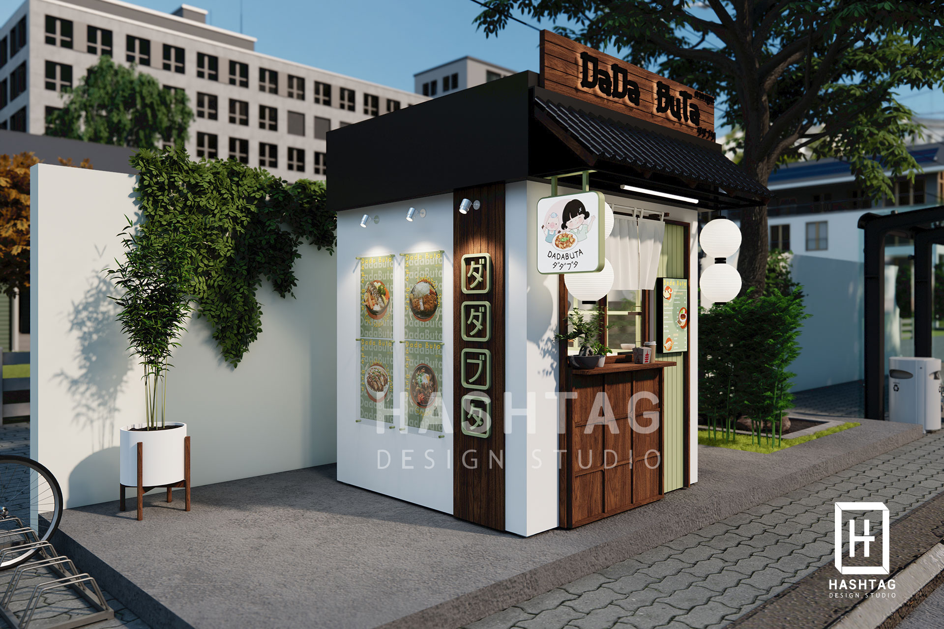 งานออกแบบคีออสร้าน "DADA BUTA" ร้านค้าขนาดเล็กที่ออกแบบตกแต่งเป็นสไตล์ญี่ปุ่น ขายสินค้าเป็นแบบ Take Away ลูกค้าสามารถนั่งทานภายนอกร้านได้ ภายในเป็นพื้นที่เตรียมอาหารโดยทางเราได้ออกแบบและจัดวาง เพื่อให้ตอบโจทย์การใช้งานในพื้นที่ที่มีอย่างจำกัด