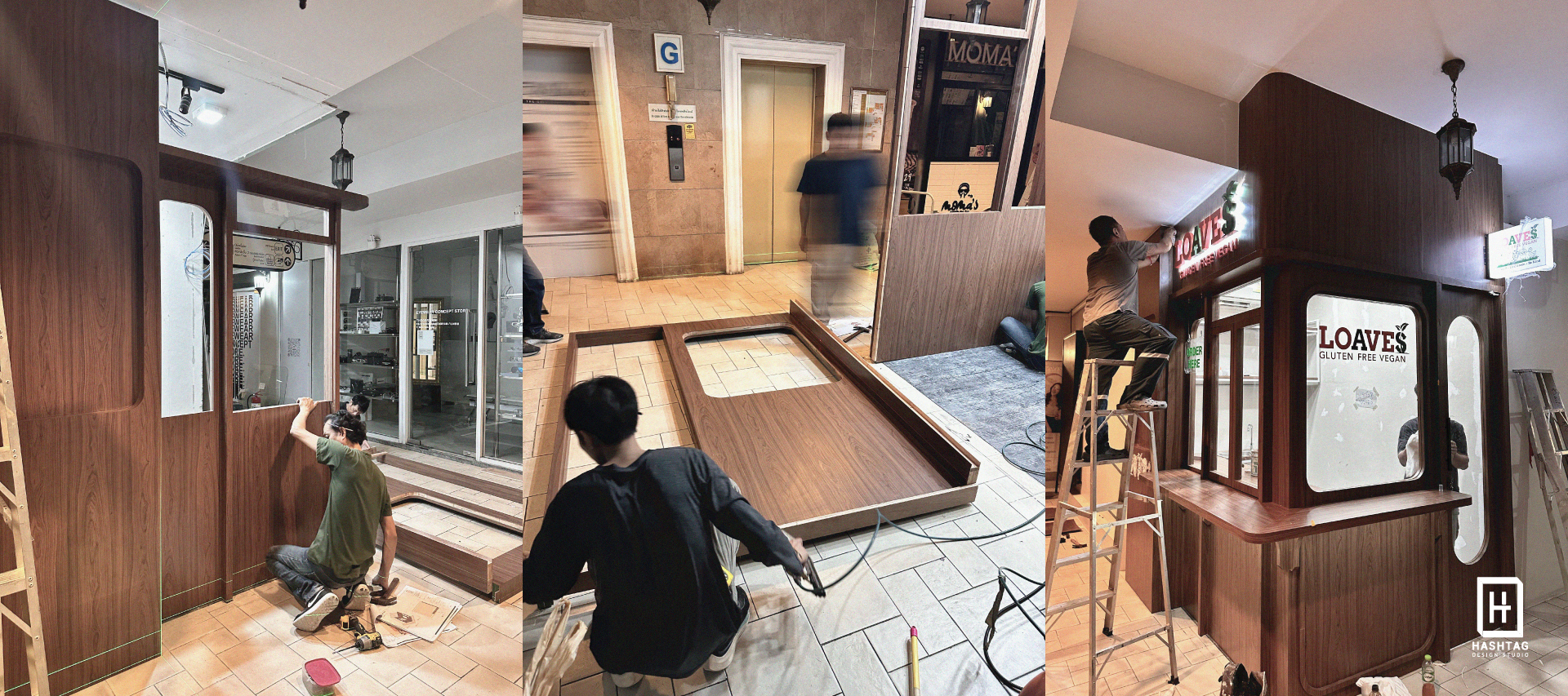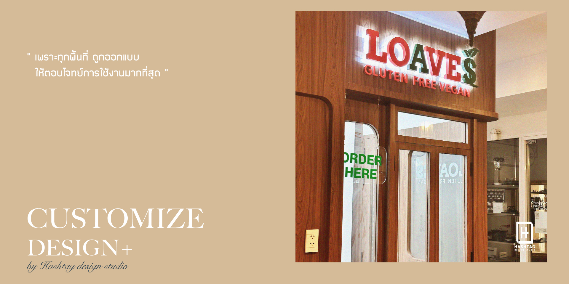 ภาพงานออกแบบร้าน "LOAVES" ร้านขายเครื่องดื่มประเภทกาแฟและเบเกอรี่ แบบ Take Away ออกแบบภายใต้พื้นที่จำกัดให้ภายในร้านสามารถอบเบเกอรี่และชงเครื่องดื่มได้
