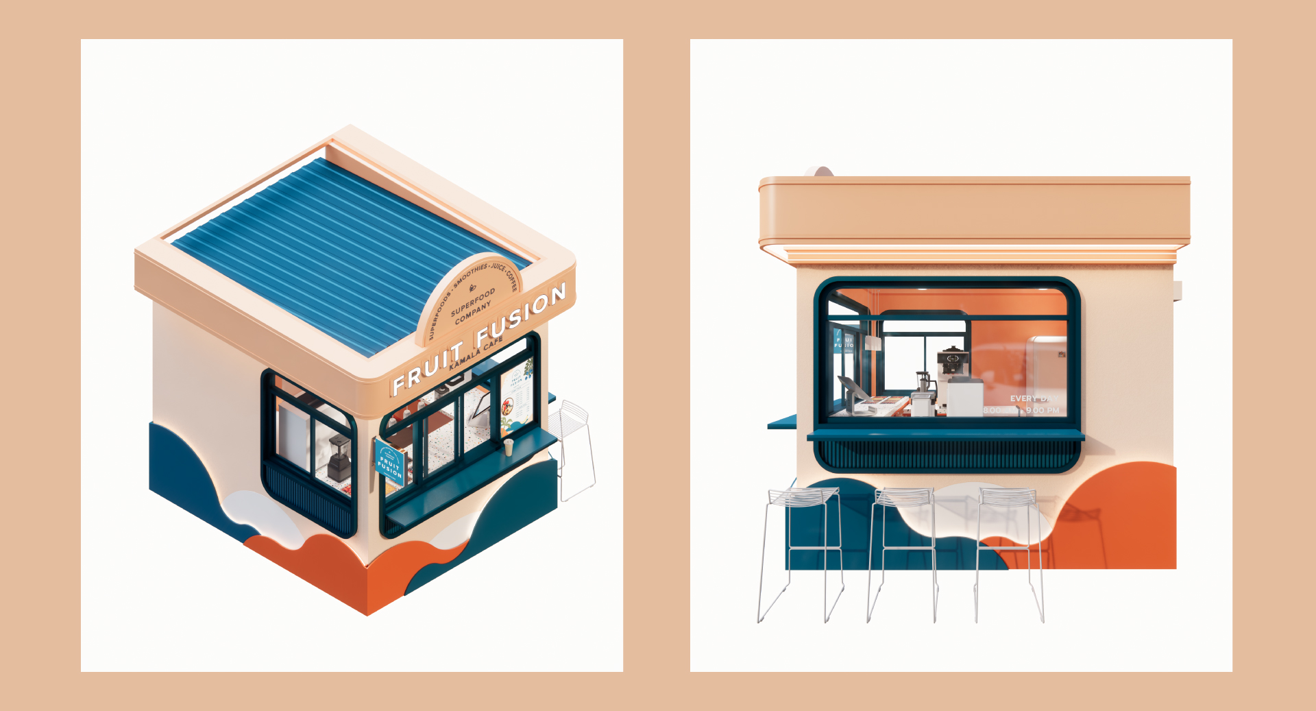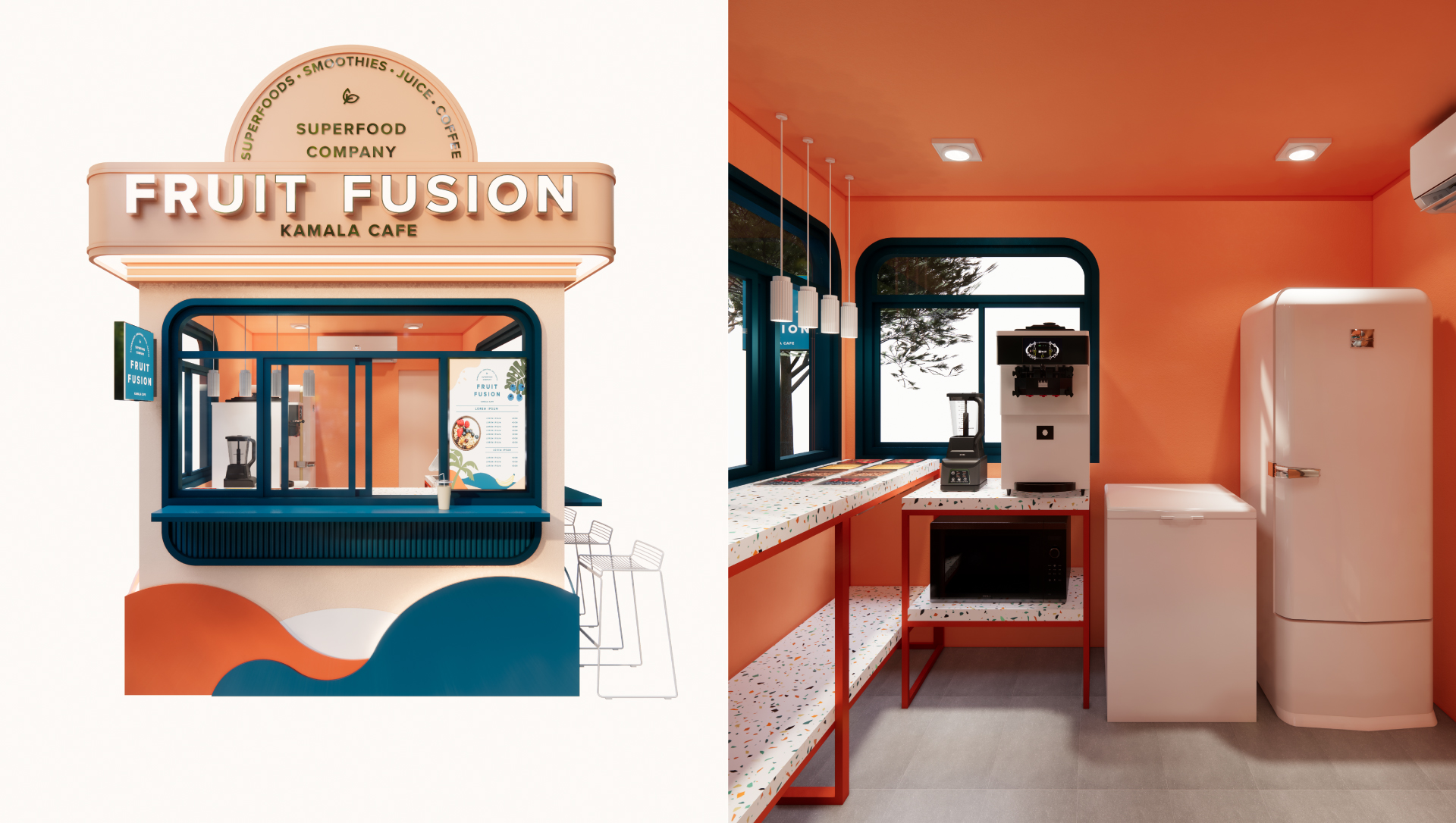 งานออกแบบคีออสขายเครื่องดื่มประเภทผลไม้