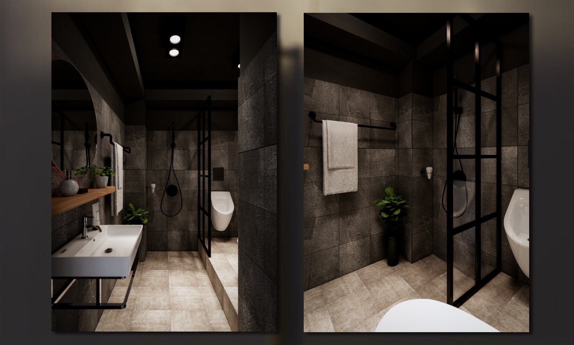 โจทย์คือออกแบบให้อยู่ในงบ เน้นโทนเข้ม เทา ดำ