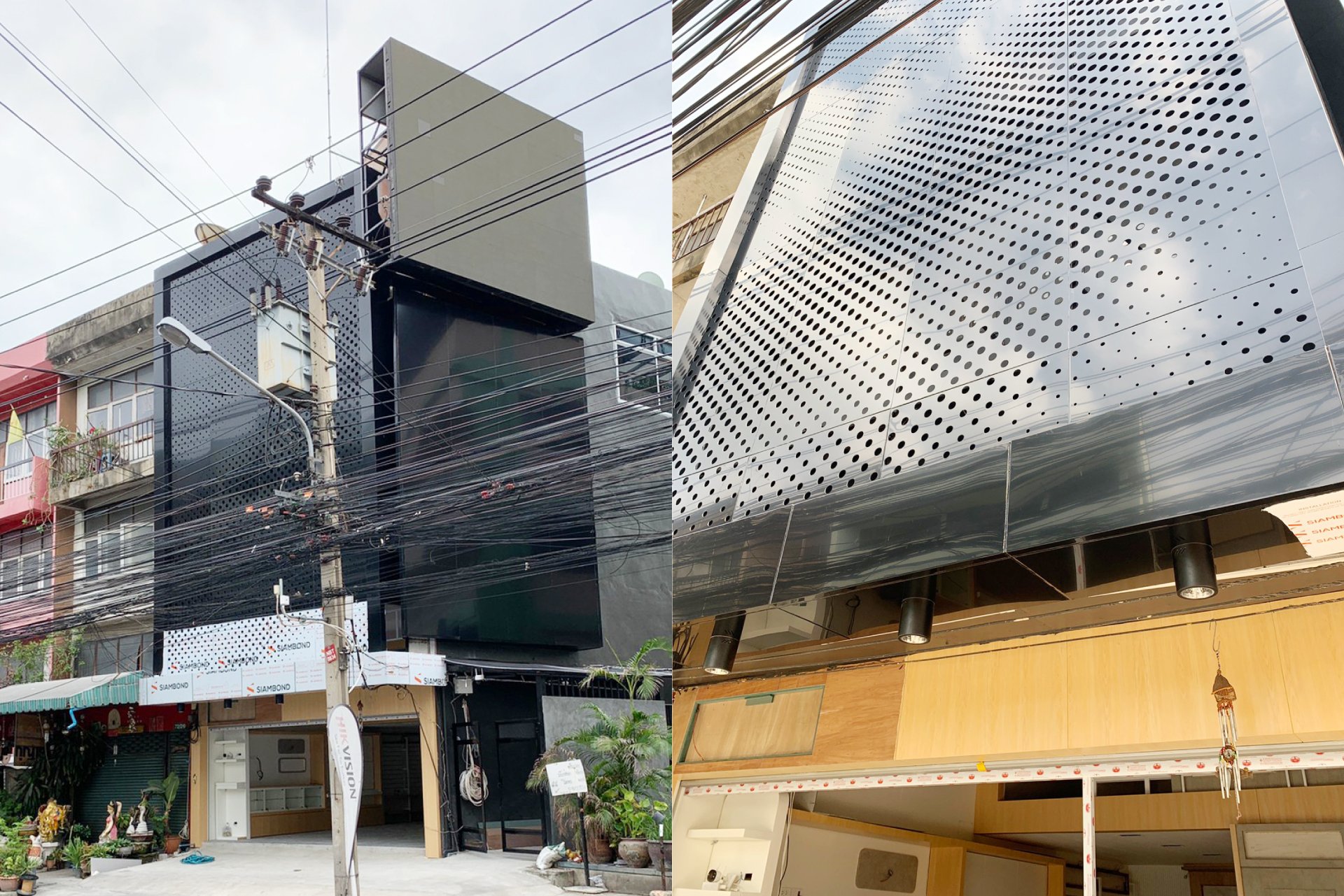 บนอาคารทาสีดำเฉพาะผนังด้านข้างตึก และดำเนินการติดตั้งคอมโพสิตทั้งด้านหน้าและด้านข้าง เทพื้นด้านใน ปูกระเบื้องพื้นใหม่