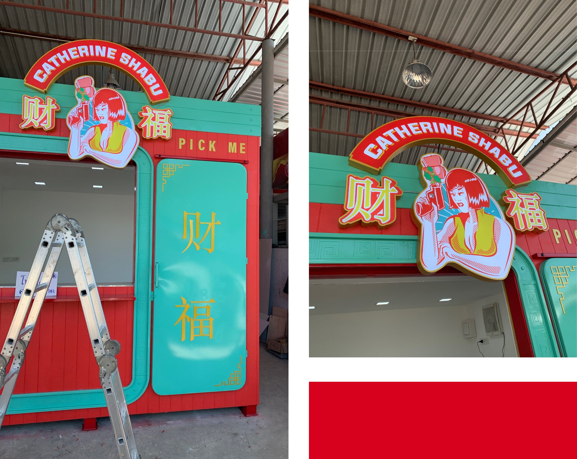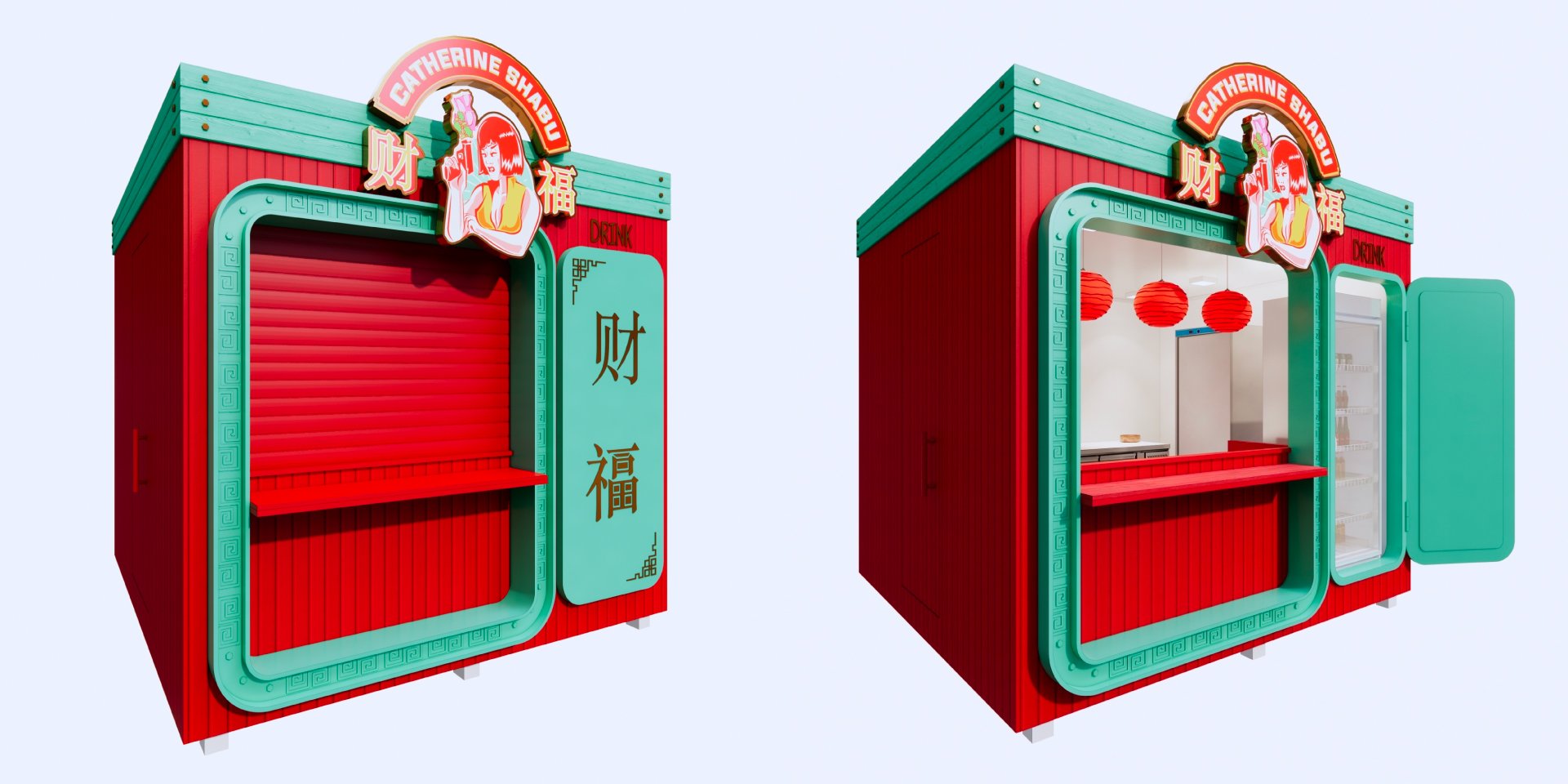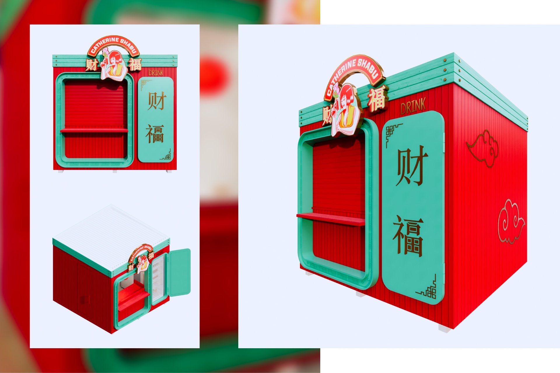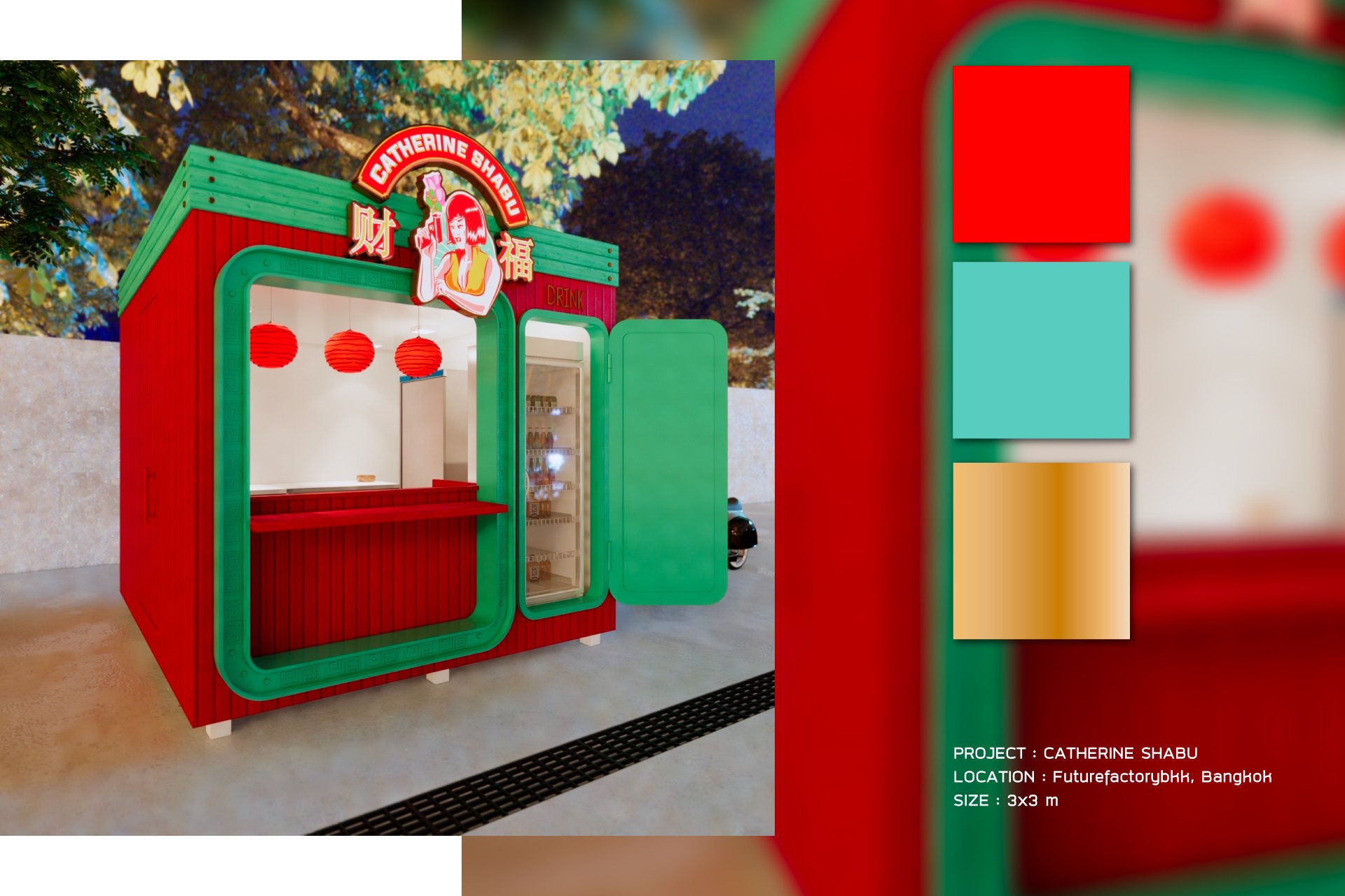Catherine Shabu Kiosk Design คีออสสไตล์จีนโมเดิร์น ขายชาบูเสียบไม้ size 3x3 เมตร