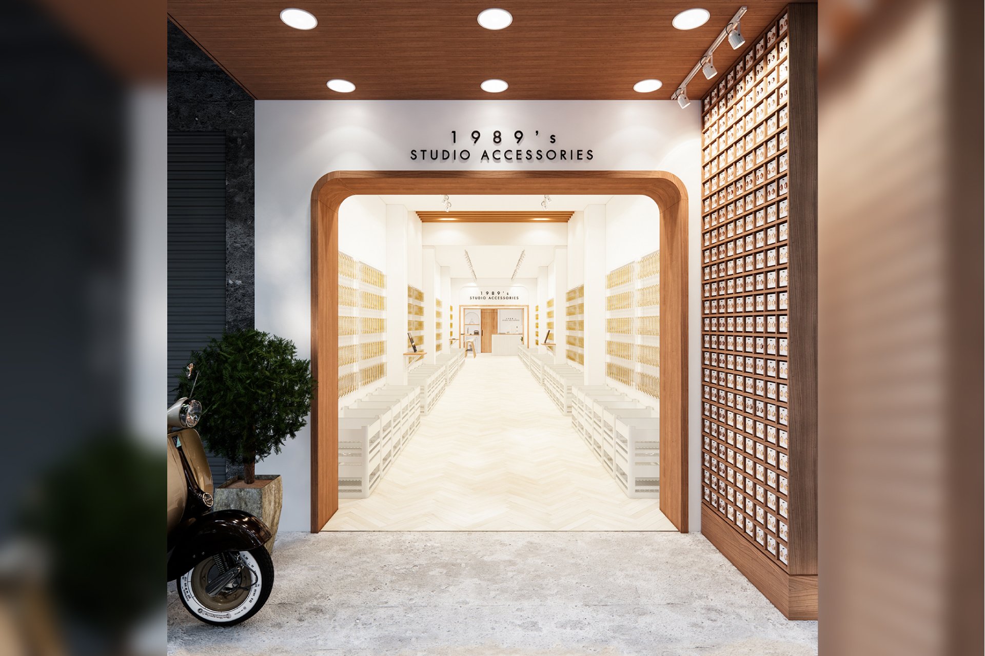 ลูกค้าอยากได้พื้นที่แขวนขายเครื่องประดับแบบจัดเต็มพื้นที่ ทั้งซ้ายขวา ใช้ทุกพื้นที่ให้คุ้มค่าที่สุด ด้านหน้าทางเข้าร้าน เป็นช่องเล็กเรียงกันเป็นชั้น จนสุดเพดานร้าน แขวนเครื่องประดับด้วยตะปูตอก เคาน์เตอร์คิดเงินอยู่ทางด้านหลังร้าน เพื่อสะดวกเวลาคิดเงิน ทำให้ลูกค้าไม่ยืนเต็มพื้นที่หน้าร้าน