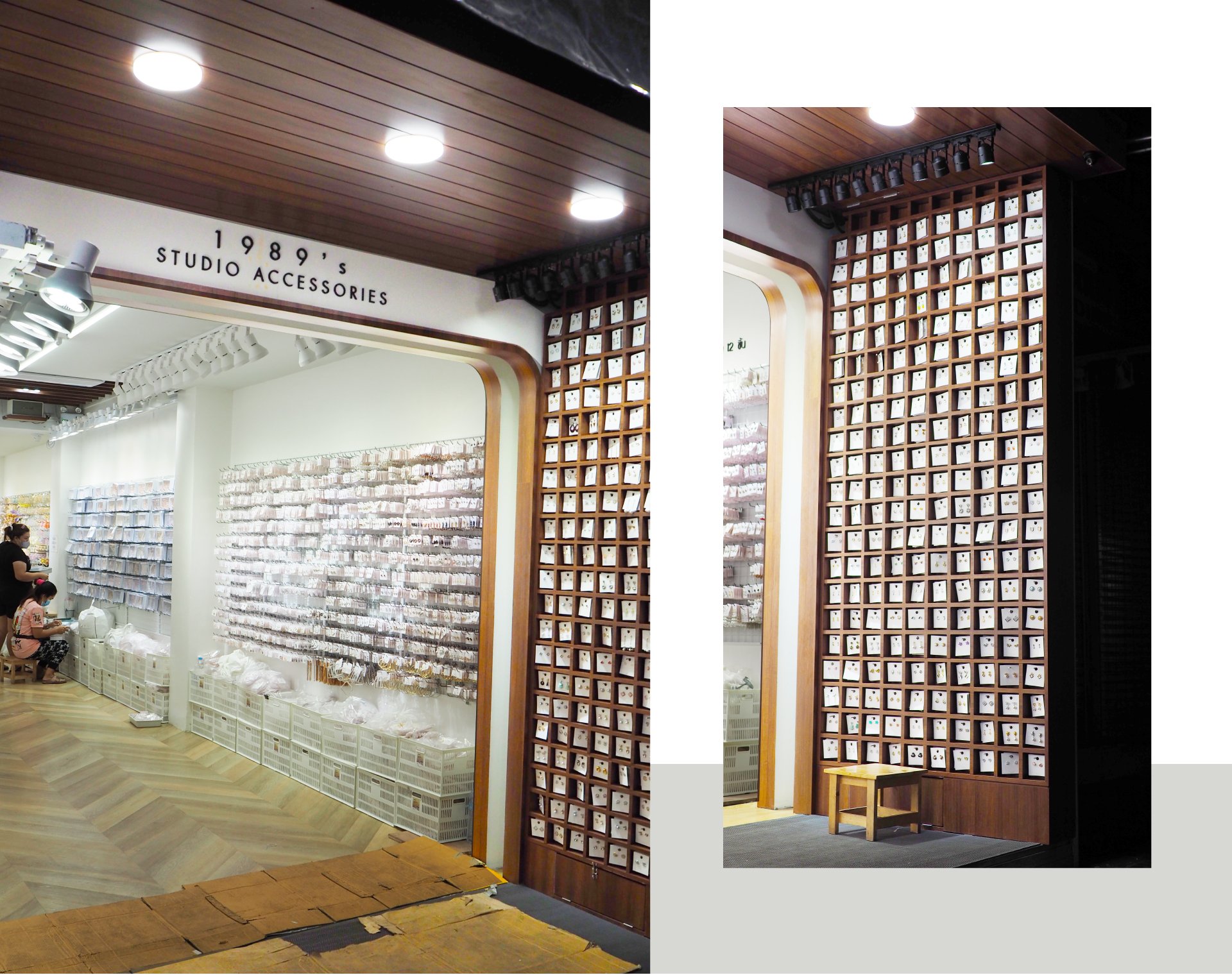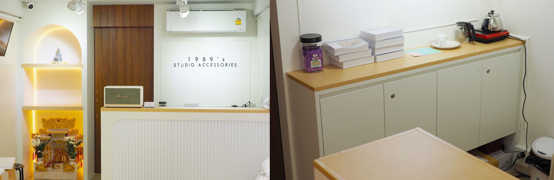 ลูกค้าอยากได้พื้นที่แขวนขายเครื่องประดับแบบจัดเต็มพื้นที่ ทั้งซ้ายขวา ใช้ทุกพื้นที่ให้คุ้มค่าที่สุด ด้านหน้าทางเข้าร้าน เป็นช่องเล็กเรียงกันเป็นชั้น จนสุดเพดานร้าน แขวนเครื่องประดับด้วยตะปูตอก เคาน์เตอร์ทางด้านหลังร้านสำหรับพื้นที่ทำงาน