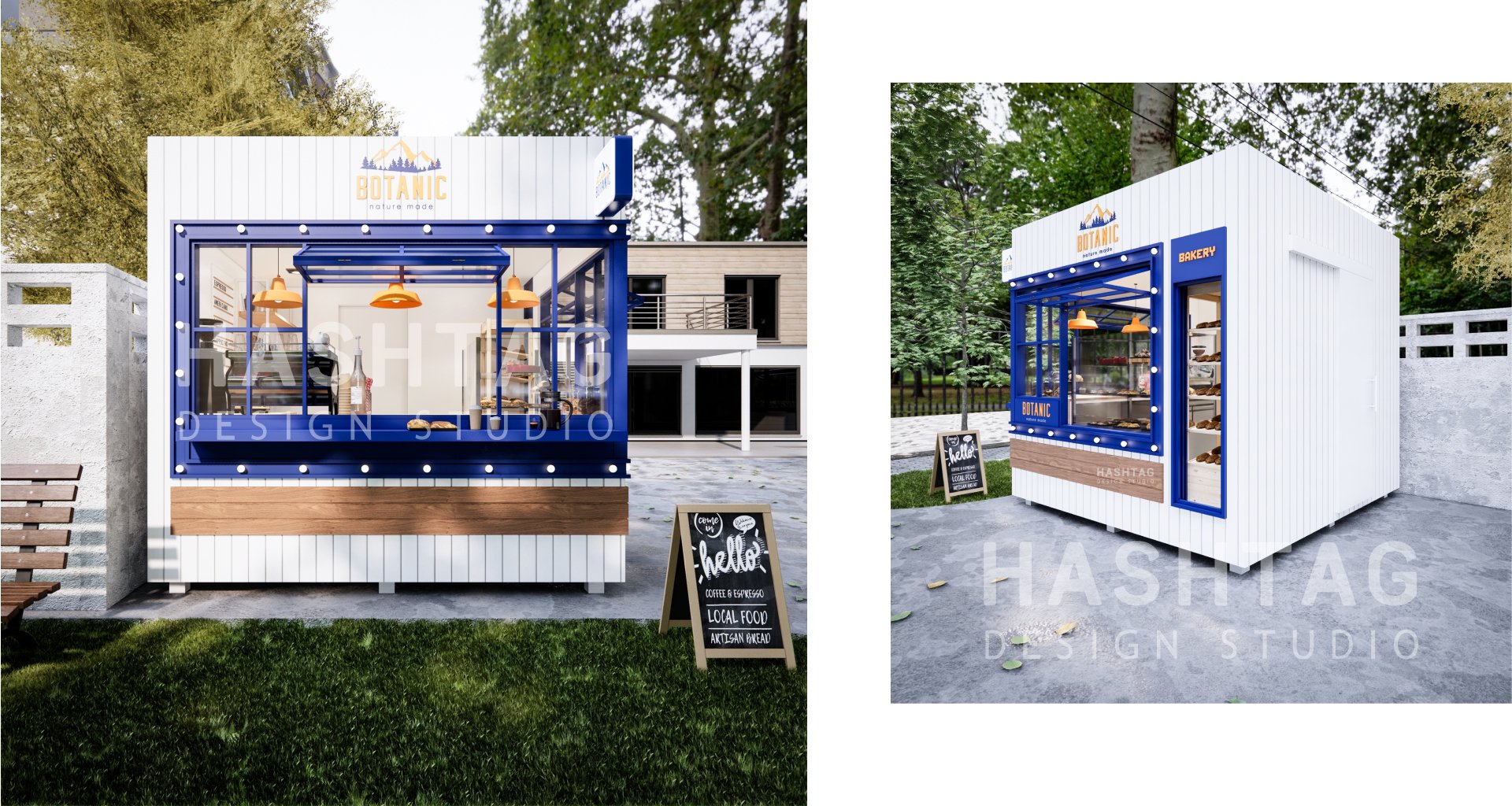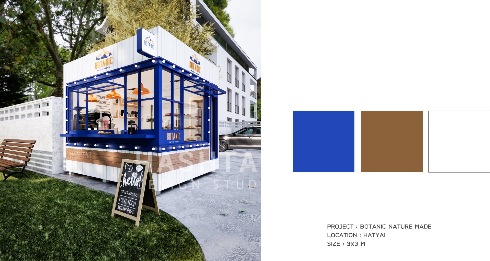 คีออสร้านขายกาแฟและเบเกอรี่ ที่มาใน concept ตามแบบฉบับของแบรนด์ลูกค้า แข็งแรงและเรียบง่าย