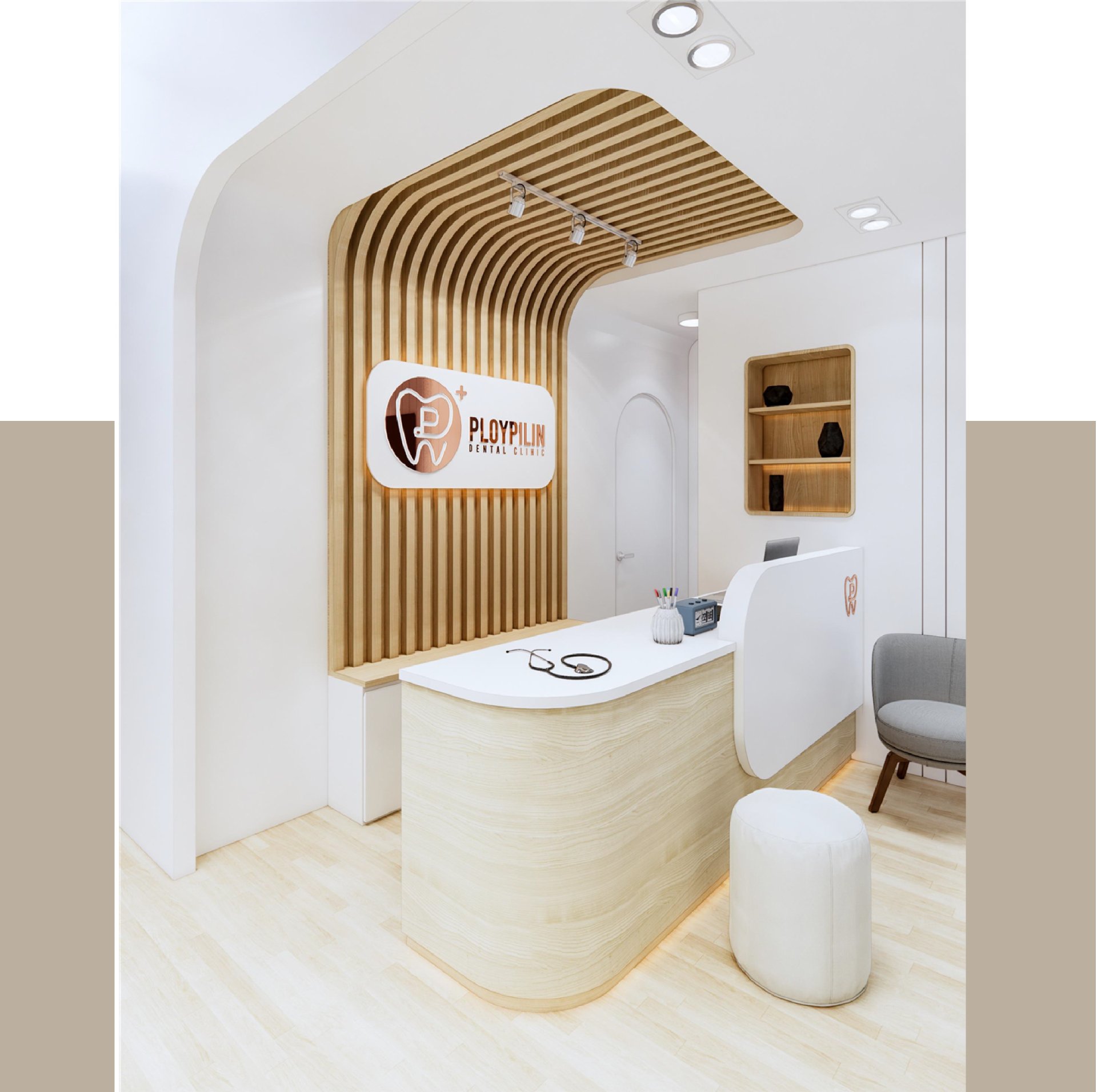 งานออกแบบคลินิกทันตกรรม พลอยไพลิน เป็นงานรีโนเวทตึกแถว ออกแบบให้เป็นคลินิกทำฟัน ร้านเน้นความเรียบง่าย สบายตา ด้วยโทนไม้ตัดกับโทนขาว มีในส่วนของเคาน์เตอร์ต้อนรับ ส่วนโถงรับรองลูกค้า ด้านหลังเป็นส่วนห้องตรวจ 3 ห้อง, ห้องน้ำ และห้อง X-ray