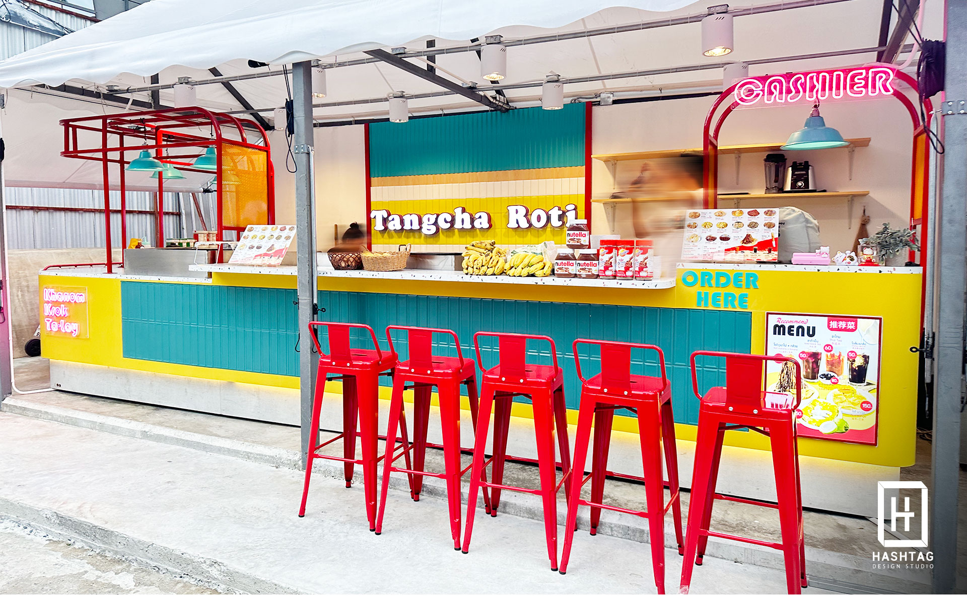 งานออกแบบและติดตั้งร้าน "Tangcha Roti" ในตลาดจ็อจแฟร์ เซ็นทรัลฯ พระราม 9 โดยออกแบบใช้โทนที่ตัดกันเพื่อเพิ่มจุดเด่นให้กับร้านค้า เคาน์เตอร์ยาวทรงตัวแอล ใช้เป็นพื้นที่สำหรับทำโรตี รับออเดอร์ โซนชงชา และใช้เป็นพื้นที่สำหรับให้ลูกค้านั่งรอ