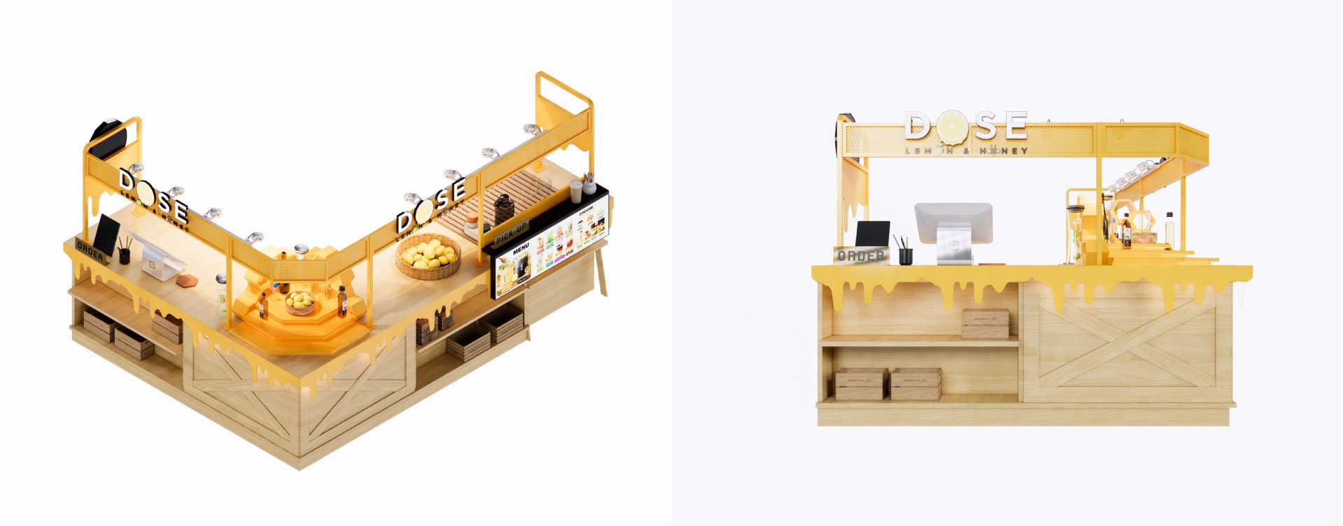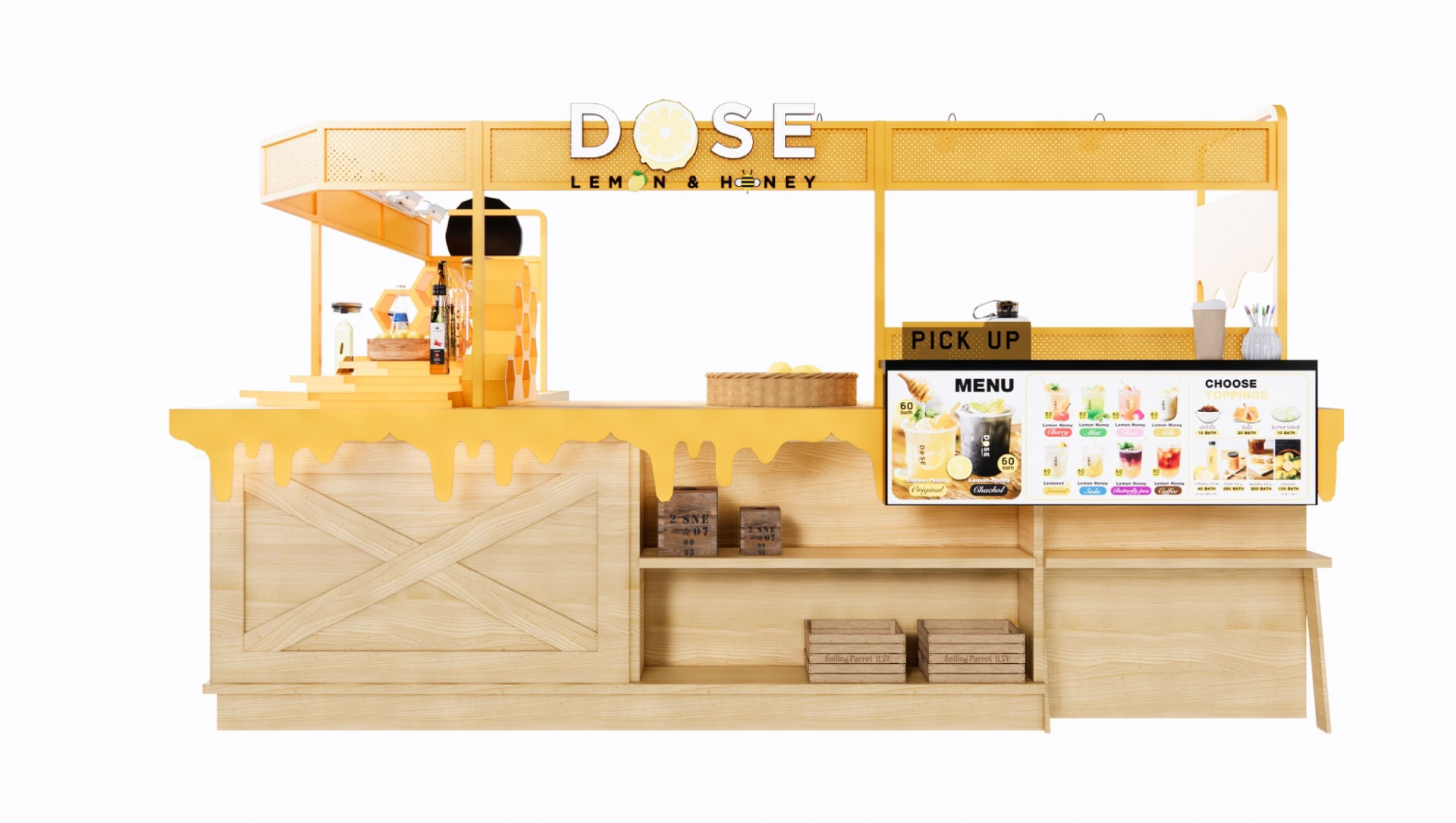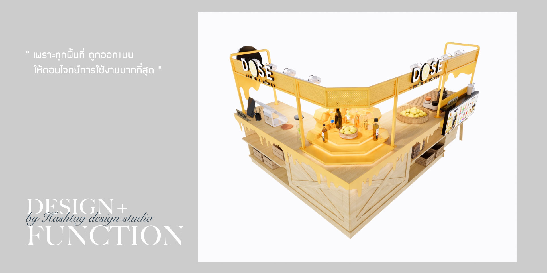 งานออกแบบบูธขายสินค้าเครื่องดื่มน้ำผึ้งมะนาว "Dose"