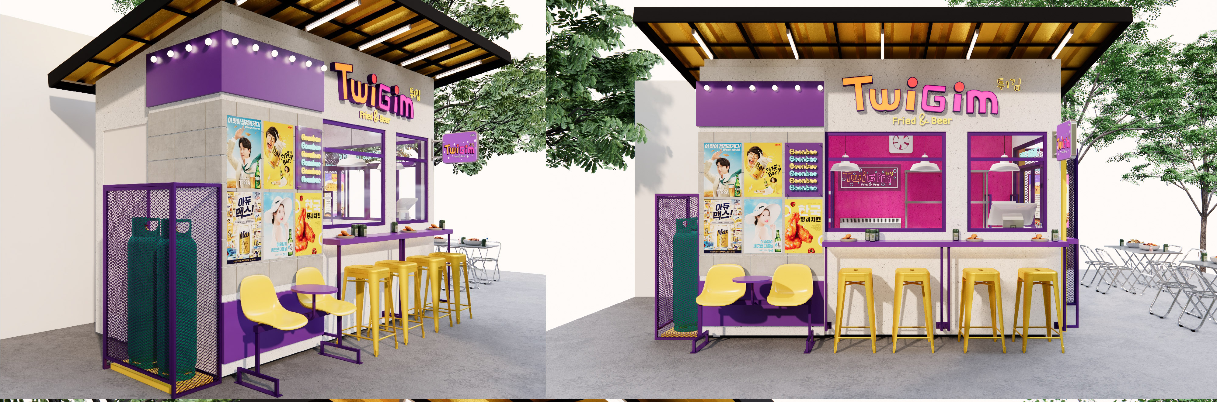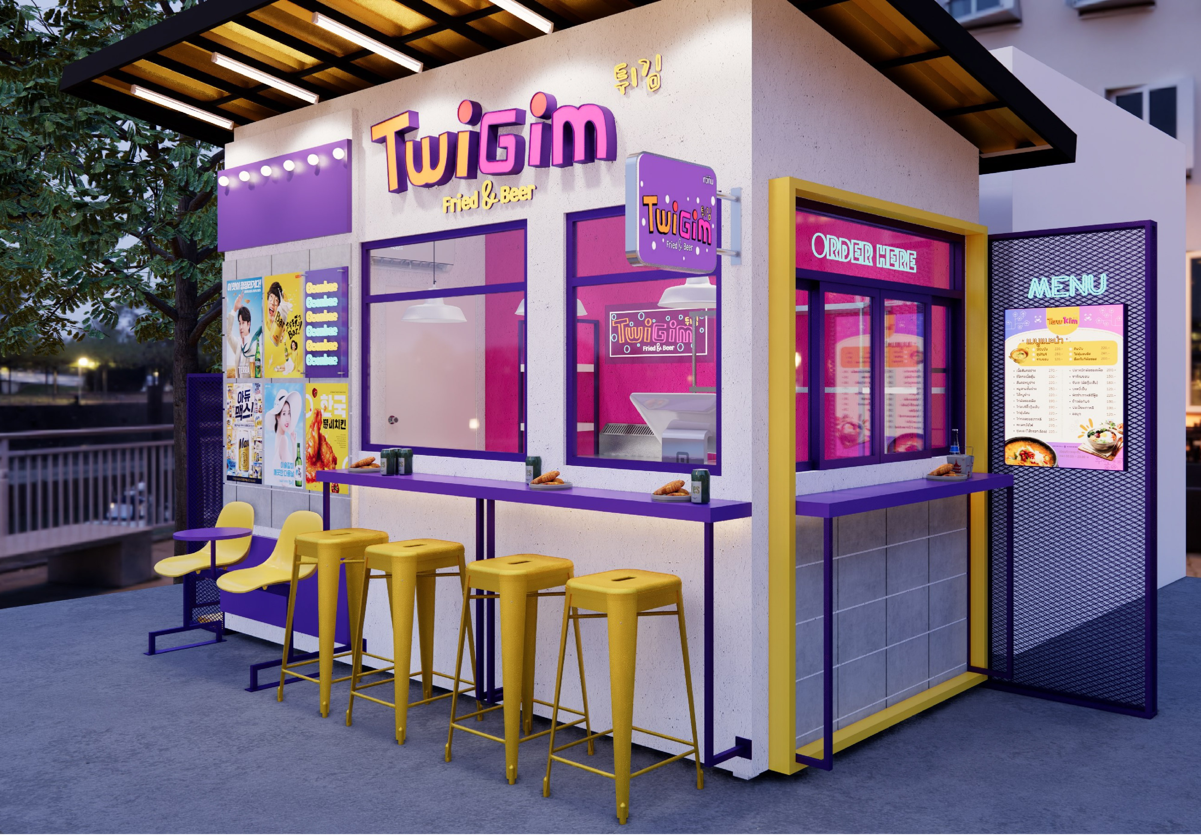 งานออกแบบร้านค้าเป็นทรงคีออส กลางแจ้ง